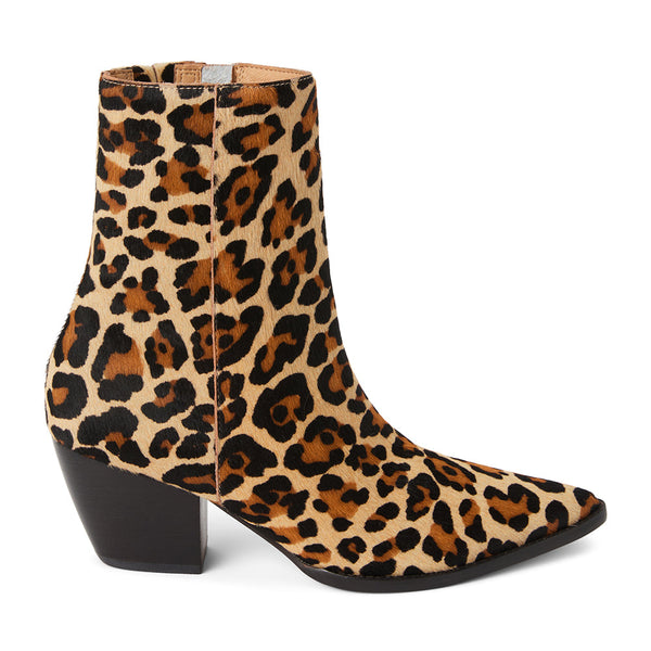 Caty Ankle Boot – Matisse Footwear – Tiger-print haircalf ankle boot with pointed toe and western block heel.Caty Ankle Boot – Matisse Footwear – Tiger-print haircalf ankle boot with pointed toe and western block heel.